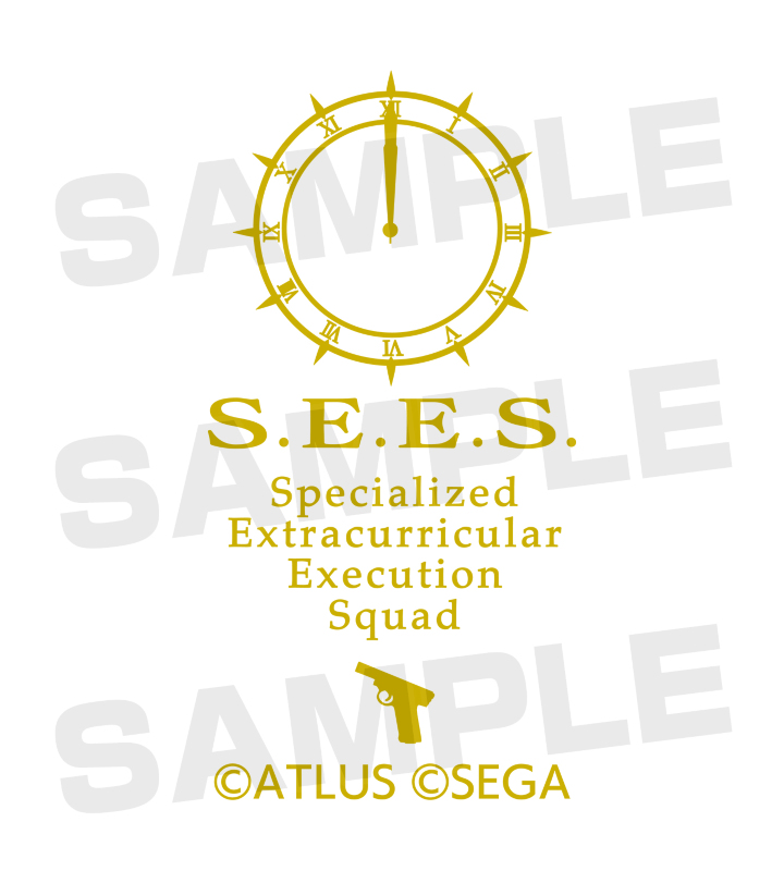 影時間突入を表す時計や召喚器、S.E.E.S.の文字などペルソナ3の世界観を詰め込んだデザインをゴールドの箔プリントで仕上げています。