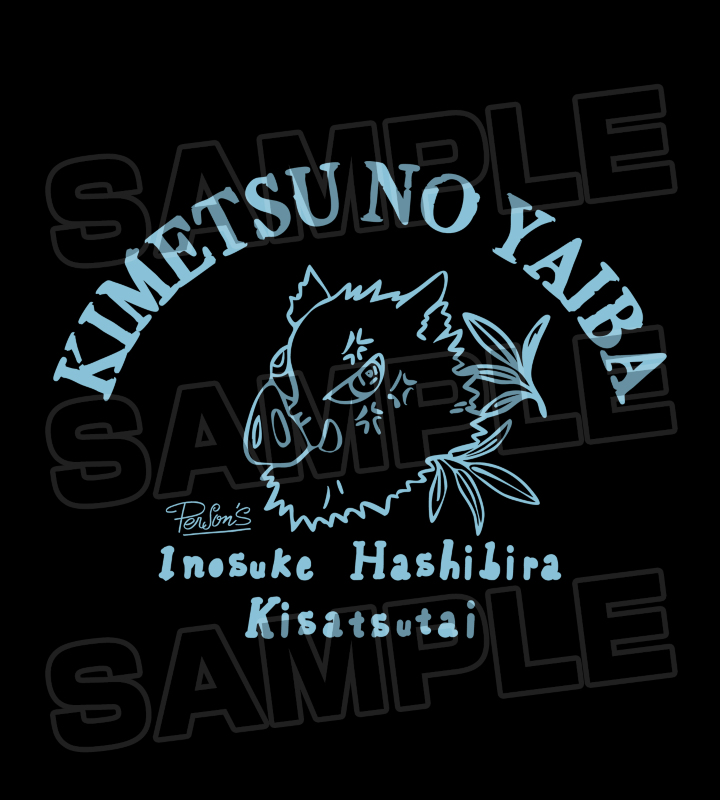 嘴平伊之助の名前や猪の頭、伊之助をイメージした花を組み合わせたデザインをフロント部分にレイアウトしました。