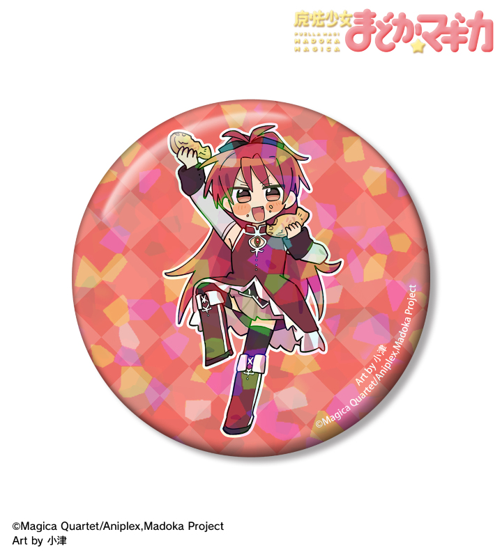 TVアニメ「魔法少女まどか☆マギカ」×「イラストレーター小津」のコラボレーションアイテム「描き起こし 佐倉杏子 魔法少女衣装ver. Art by 小津 ホログラム75mm缶バッジ」の登場です。
