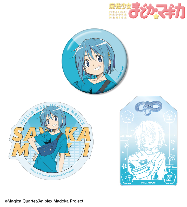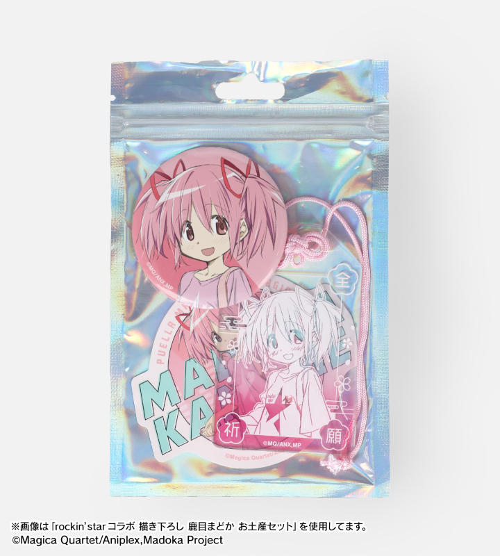 美樹さやかの描き下ろしイラストを、アクリルお守り、缶バッジ、ステッカーの3点セットにまとめ、キャラクターの魅力あふれる、ジッパー付きの袋に入った、プレゼントやお土産にも使えるセットに仕上げました。