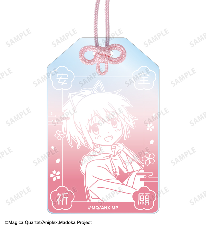 鹿目まどかの描き下ろしイラストを、アクリルお守り、缶バッジ、ステッカーの3点セットにまとめ、キャラクターの魅力あふれる、ジッパー付きの袋に入った、プレゼントやお土産にも使えるセットに仕上げました。