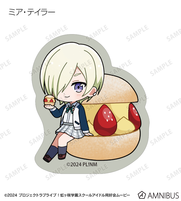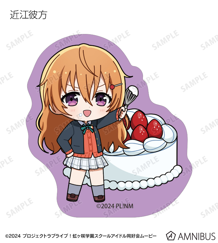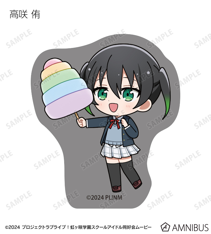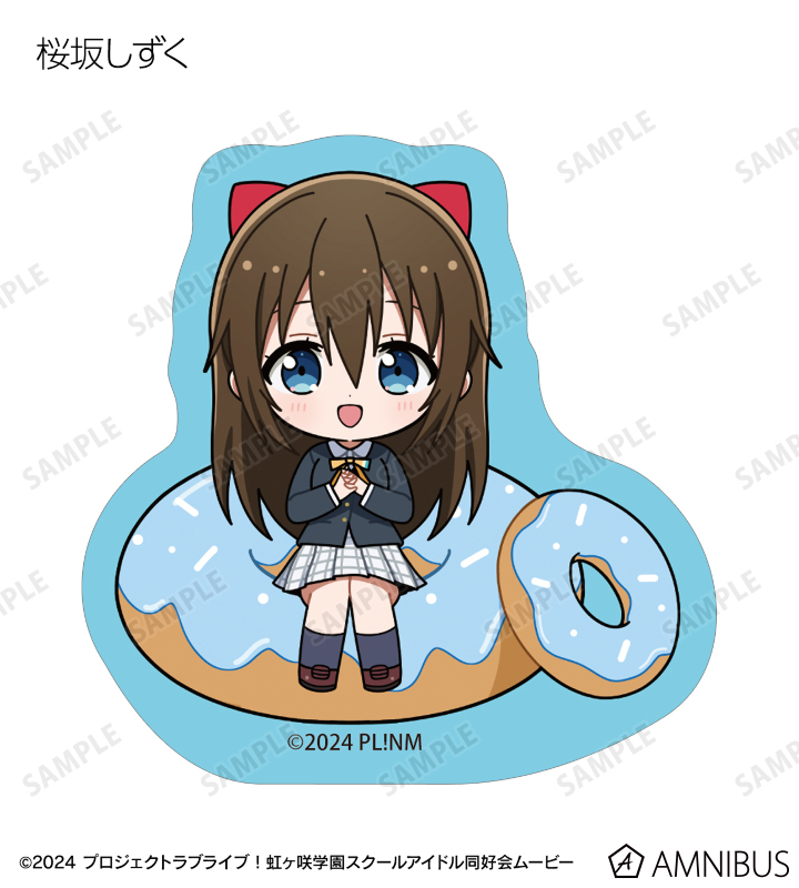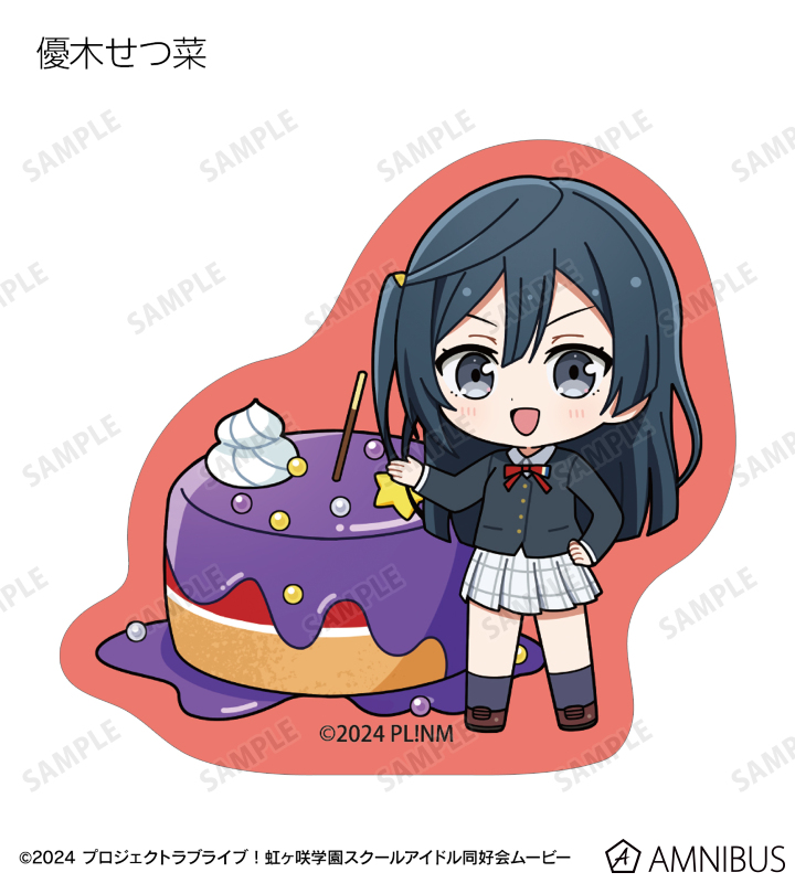 高咲 侑、上原歩夢、中須かすみ、桜坂しずく、朝香果林、宮下 愛、近江彼方、優木せつ菜、エマ・ヴェルデ、天王寺璃奈、三船栞子、ミア・テイラー、鐘 嵐珠のちびキャライラストをメインにデザインし、フレークシールに仕上げました。