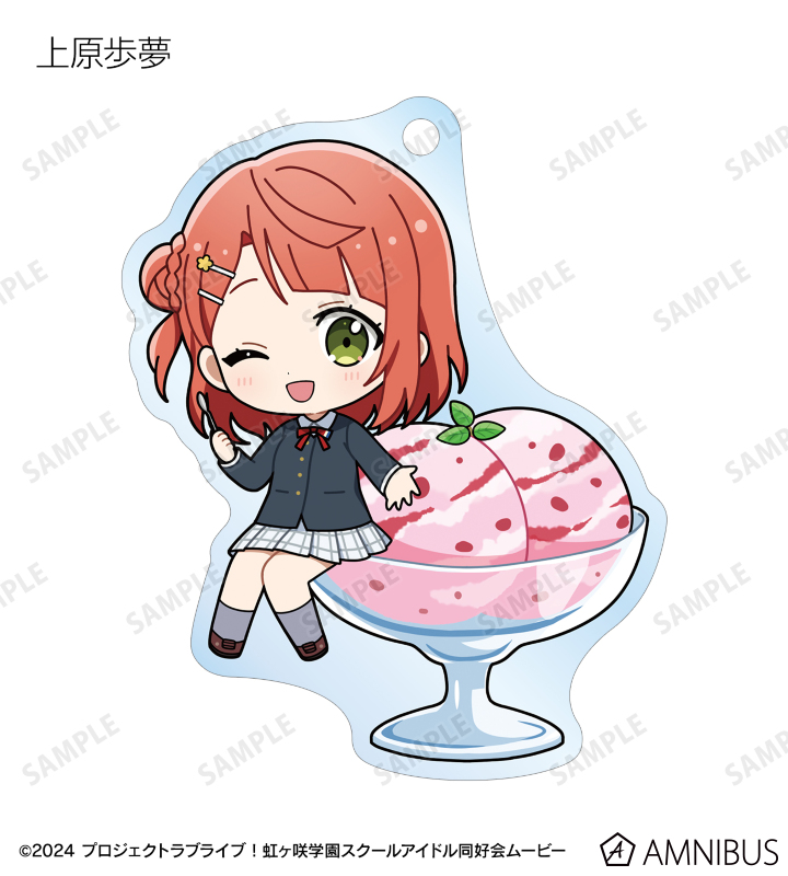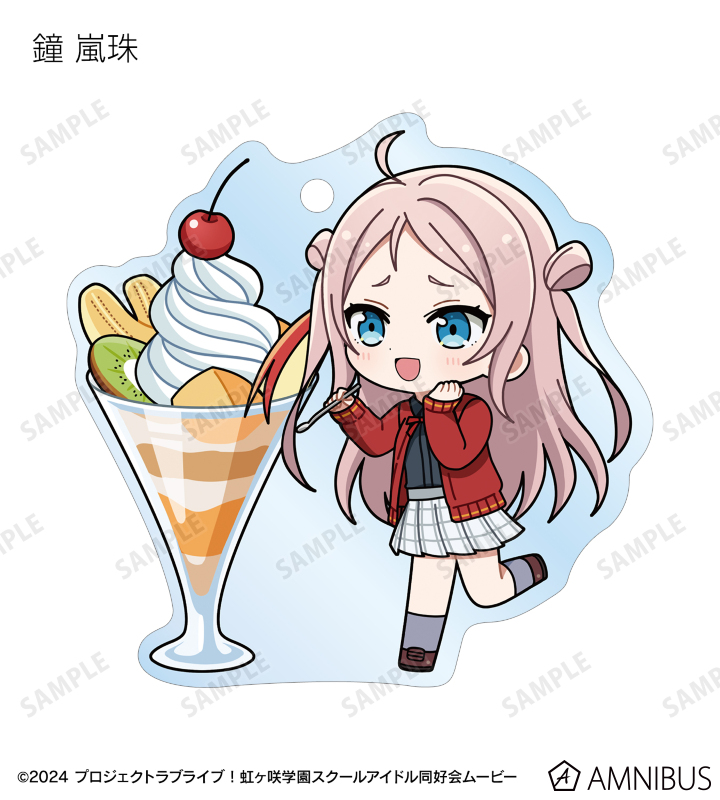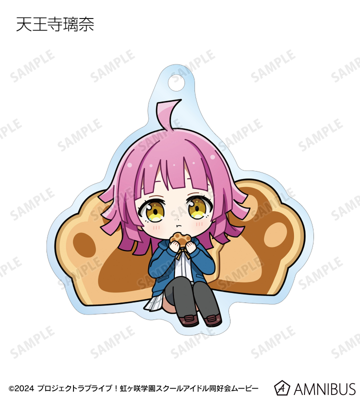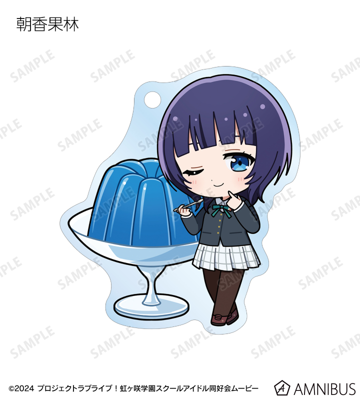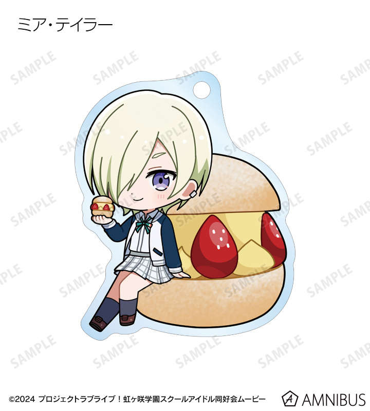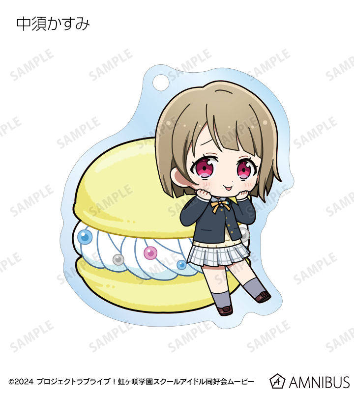 高咲 侑、上原歩夢、中須かすみ、桜坂しずく、朝香果林、宮下 愛、近江彼方、優木せつ菜、エマ・ヴェルデ、天王寺璃奈、三船栞子、ミア・テイラー、鐘 嵐珠のちびキャライラストをメインにデザインし、アクリルキーホルダーに仕上げました。