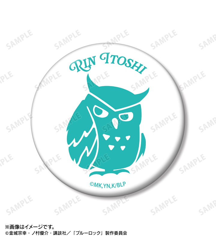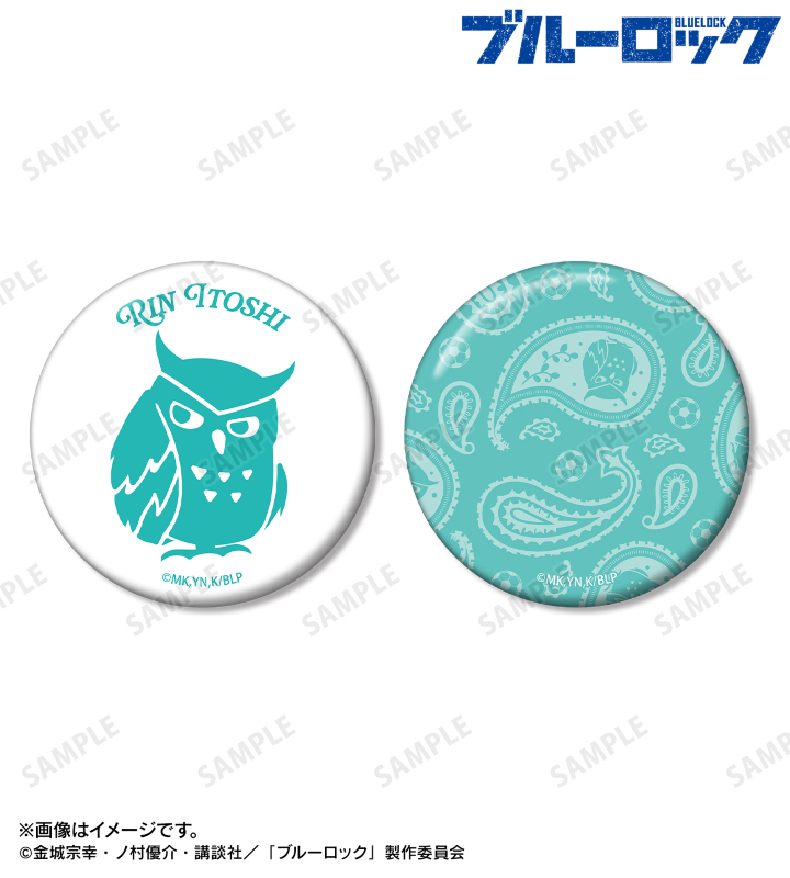 糸師 凛の名前とフクロウのモチーフを缶バッジ2個セットに仕上げました。