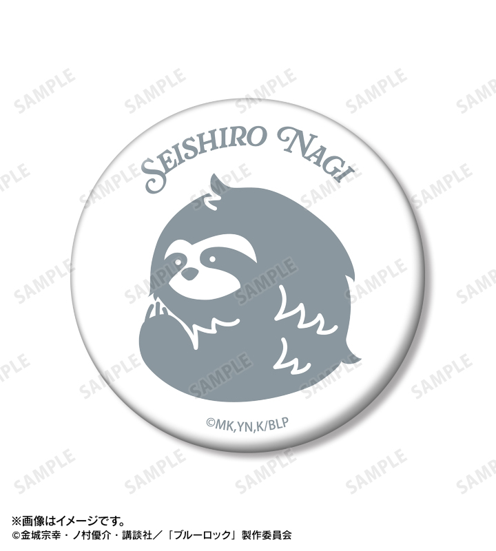 凪 誠士郎の名前とナマケモノのモチーフを缶バッジ2個セットに仕上げました。