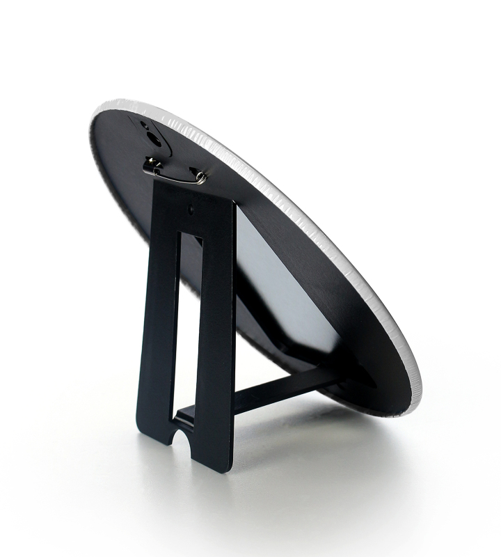 背面にはピンとスタンド、壁掛けパーツが付属し、立てかけたり壁に掛けてお使いいただけます。