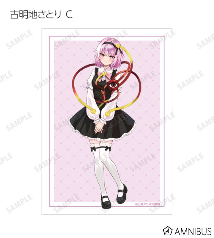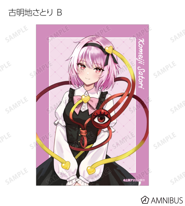 松本能人描き起こしイラストの博麗霊夢、霧雨魔理沙、魂魄妖夢、十六夜咲夜、古明地さとり、古明地こいし、レミリア・スカーレット、フランドール・スカーレットをブロマイドに仕上げました。