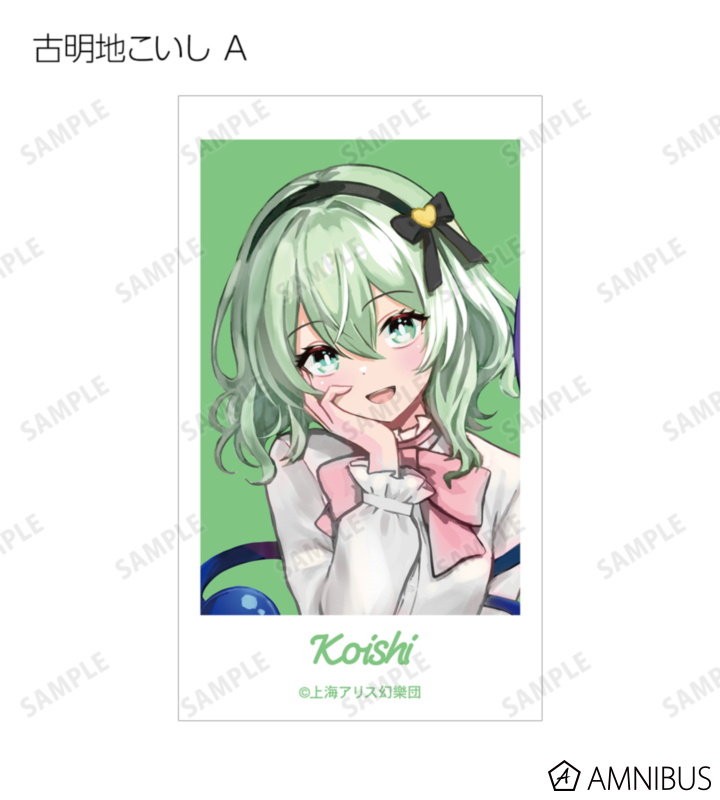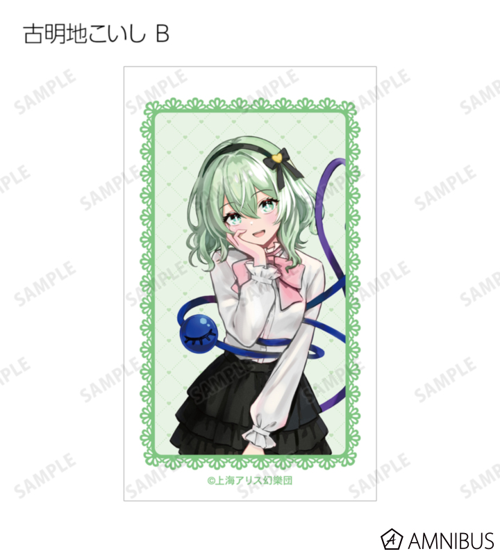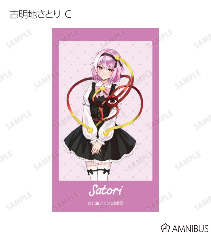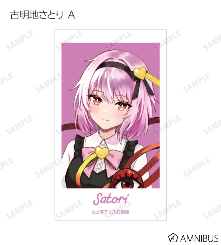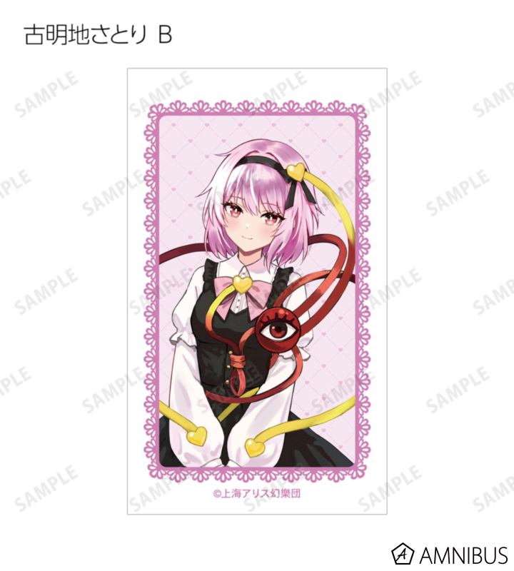 松本能人描き起こしイラストの博麗霊夢、霧雨魔理沙、魂魄妖夢、十六夜咲夜、古明地さとり、古明地こいし、レミリア・スカーレット、フランドール・スカーレットをイラストカードに仕上げました。