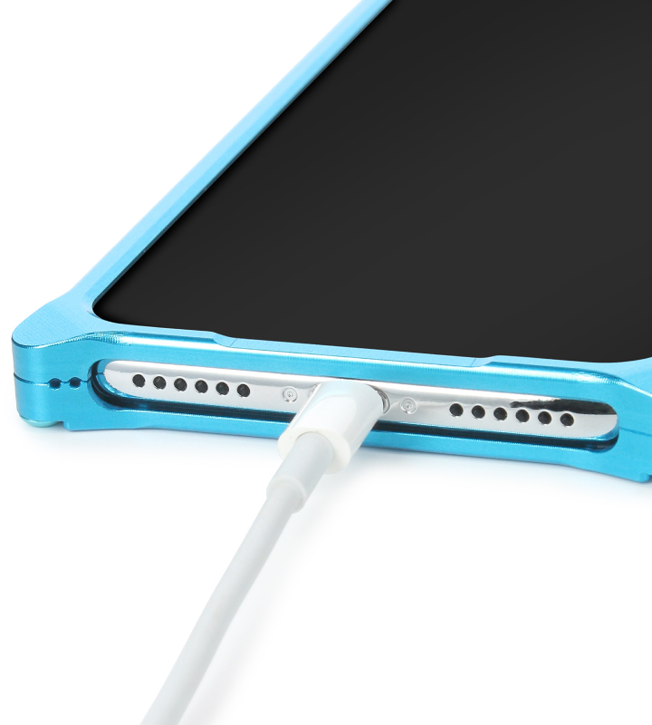 高品質のジュラルミン無垢材から削り出した軽量で高剛性のケースは、iPhone本体を外部の衝撃から守ります。