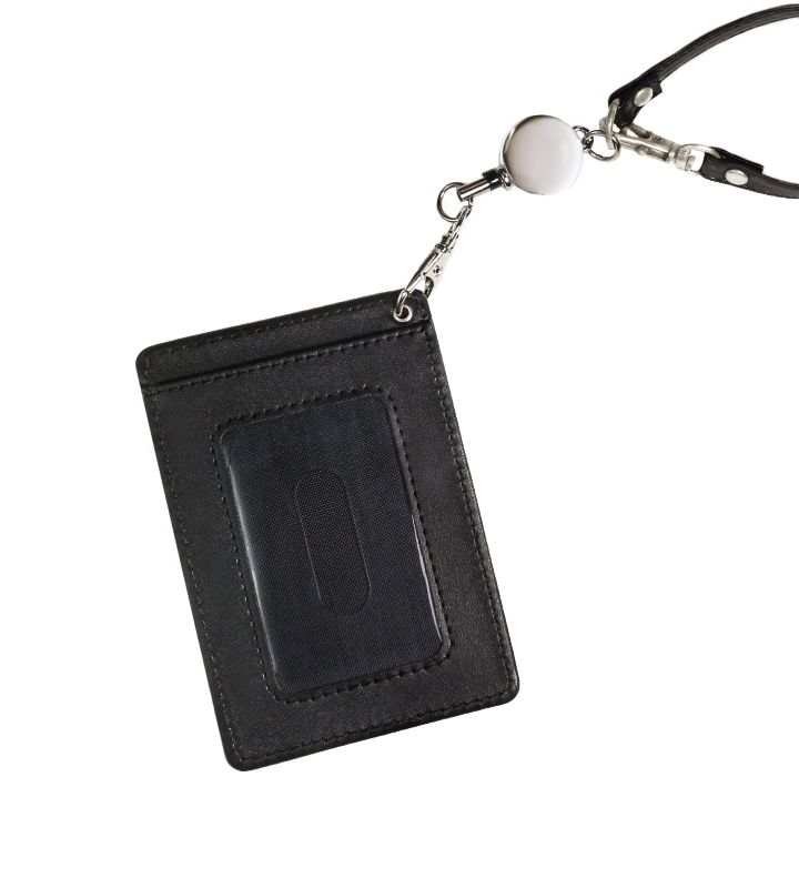 社員証や名刺を入れるのに最適なクリア窓付き1ポケットタイプで、便利なリールストラップ付きです。