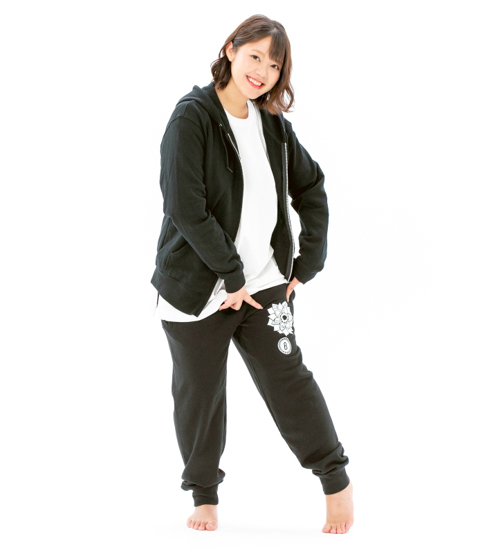 荒浪さんからいただいたイメージをもとに、ジップパーカーとスウェットパンツに仕上げています。