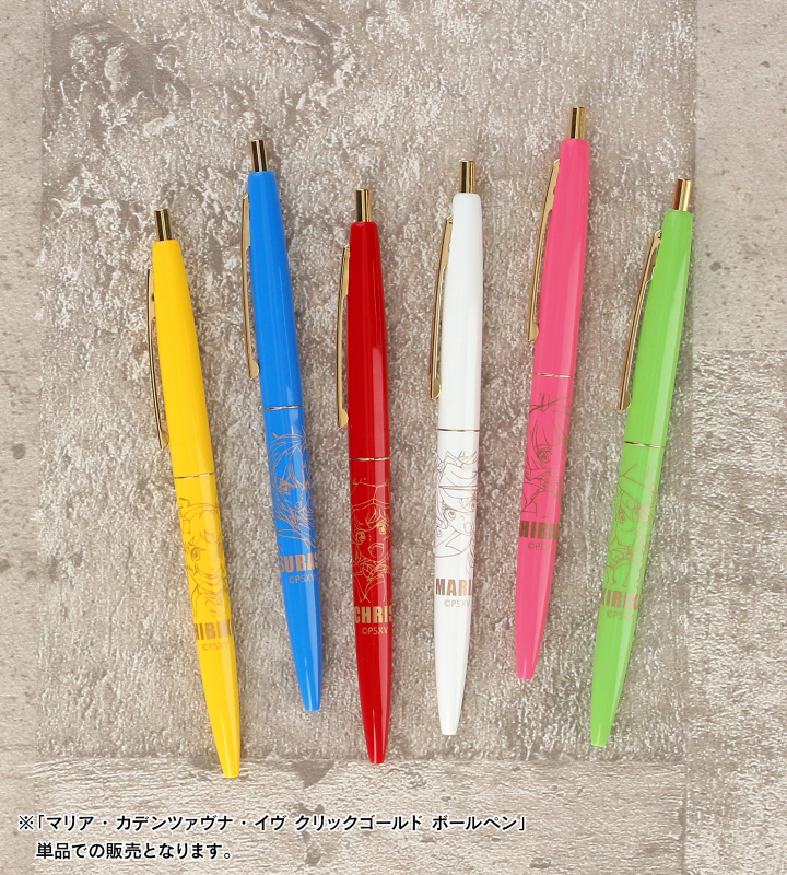『戦姫絶唱シンフォギアXV』から「BIC」のアイテム「マリア・カデンツァヴナ・イヴ クリックゴールド ボールペン」の登場です。 クリックゴールドは、高級感のあるゴールドのクリップとリングが特長のノック式ボールペンです。 マリア・カデンツァヴナ・イヴと名前を組み合わせたデザインを装者からイメージしたカラーリングの軸にプリントしました。 コンパクトなサイズ感でボディが軽く、様々なシーンでご使用いただけるアイテムです。