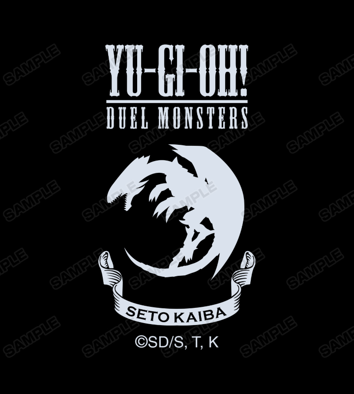 海馬瀬人の名前や作品タイトル、青眼の白龍のシルエットをレイアウトしたデザインを、キャラクターからイメージしたカラーリングの軸にプリントしました。