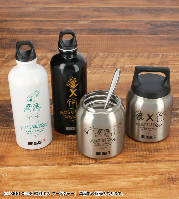 TVアニメ『僕のヒーローアカデミア』×「SIGG」のコラボレーションアイテム「SIGGコラボ 緑谷出久 フードジャー」の登場です。 SIGG(シグ)は、ボトルの専門メーカーとして、スイスの自社工場で生産・管理を行い、丈夫で衛生面に優れた性能と品質により高い評価を得るブランドです。 緑谷出久をイメージしたモチーフやヒーロースーツの靴、私服のTシャツなどをレイアウトしたデザインに仕上げました。 ステンレス製フードジャーで丈夫で衛生的、汚れもつきにくく広口で簡単にお手入れいただけます。