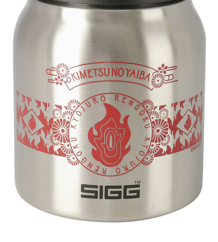 アニメ「鬼滅の刃」から「SIGG」のオリジナルアイテム「SIGG 煉獄杏寿郎 フードジャー」の登場です。 SIGG(シグ)は、ボトルの専門メーカーとして、スイスの自社工場で生産・管理を行い、丈夫で衛生面に優れた性能と品質により高い評価を得るブランドです。 煉獄杏寿郎の日輪刀の鍔、炎の模様、羽織の柄、藤の花などを和風のモチーフと合わせてレイアウトしたデザインに仕上げています。 ご飯や味噌汁などのお食事を入れることができるステンレス製フードジャーで、丈夫で衛生的、汚れもつきにくく広口で簡単にお手入れいただけます。 ※煉獄の「煉」は「火+東」が正しい表記となります。