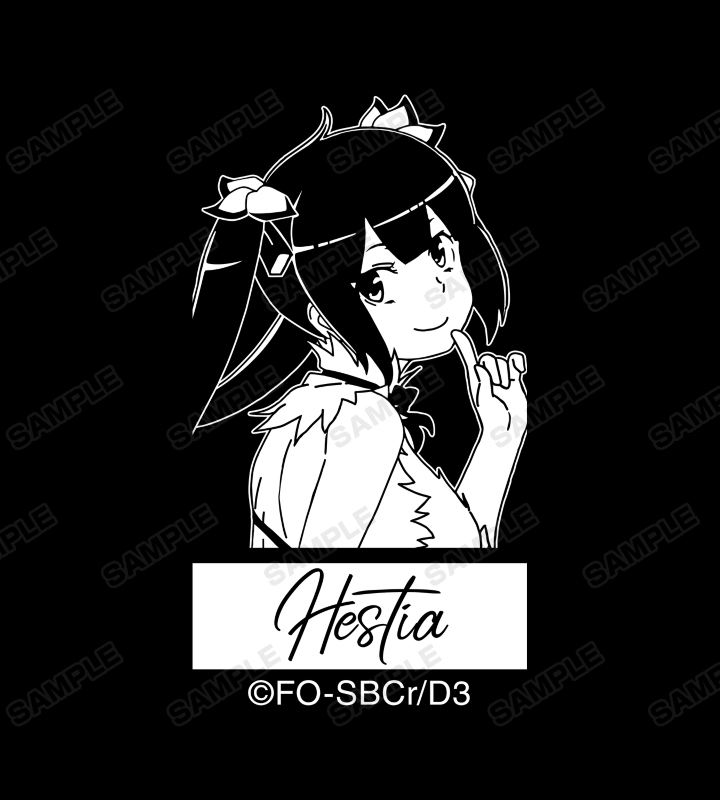 ヘスティアのイラストと名前をキャラクターからイメージしたカラーリングの軸にレイアウトしたデザインに仕上げました。