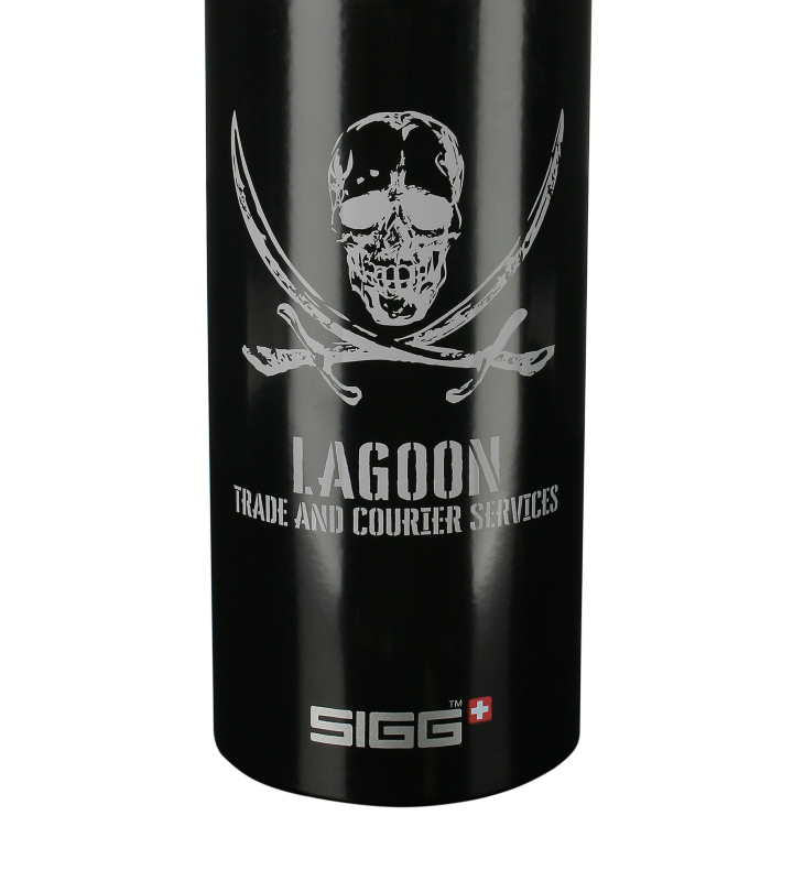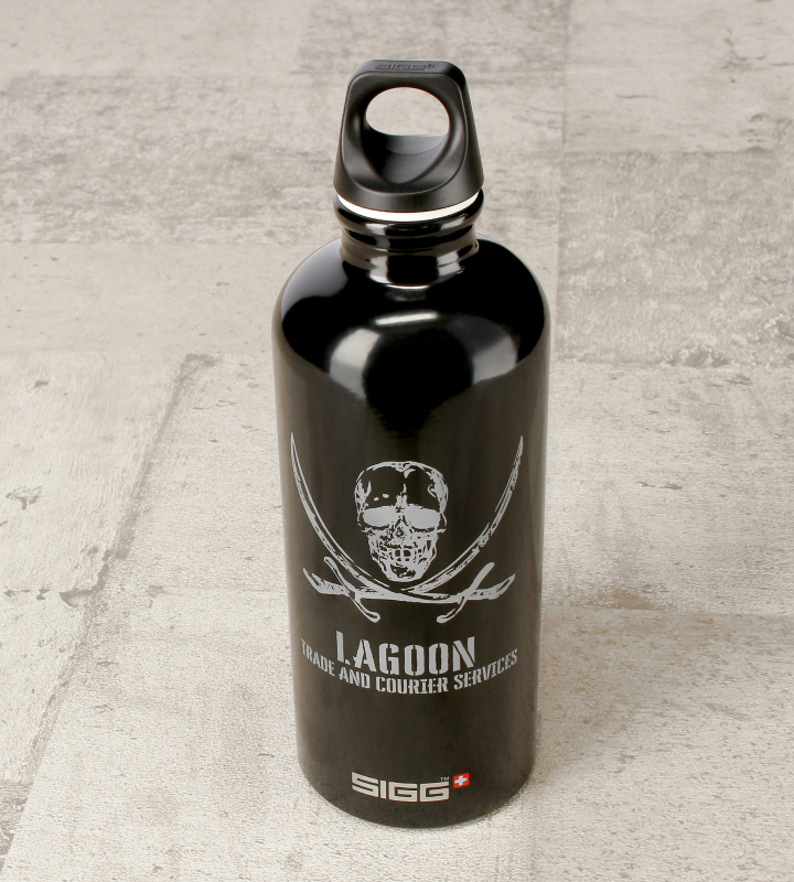 『BLACK LAGOON』×「SIGG」のコラボレーションアイテム「SIGGコラボ ラグーン商会 トラベラーボトル」の登場です。 SIGG(シグ)は、ボトルの専門メーカーとして、スイスの自社工場で生産・管理を行い、丈夫で衛生面に優れた性能と品質により高い評価を得るブランドです。 ラグーン商会をイメージしたロゴマークをレイアウトし、実際にキャラクターが使用しているようなデザインに仕上げています。 素材は良質なアルミプレートで軽量で丈夫、持ち運びに優れています。
