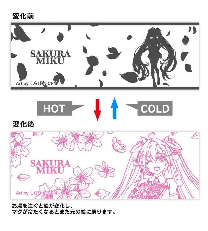 『桜ミク』×イラストレーター「しらび」の描き下ろしアイテム「描き下ろしイラスト 桜ミク Art by しらび チェンジングマグカップ」の登場です。