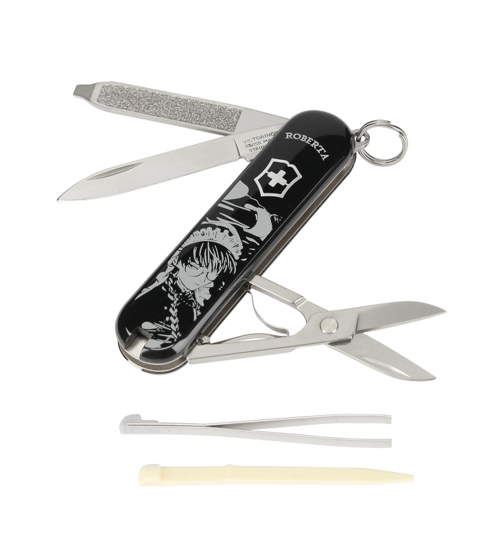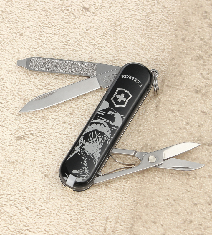 『BLACK LAGOON』から「ビクトリノックス」のアイテム「ビクトリノックス ロベルタ クラシック SD」の登場です。 ビクトリノックスは、マルチツール、キッチンナイフ、ウォッチ、トラベルギア、フレグランスといった、日常のさまざまなシーンで役立つユニークかつ高品質の製品を世界中で生産販売しているブランドです。 ロベルタや作品タイトルをレイアウトしたデザインに仕上げました。 クラシック SDは、クラシックなスタイルを特徴とし、7機能を搭載したスイス製マルチツールです。