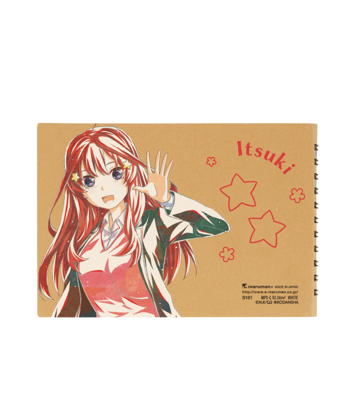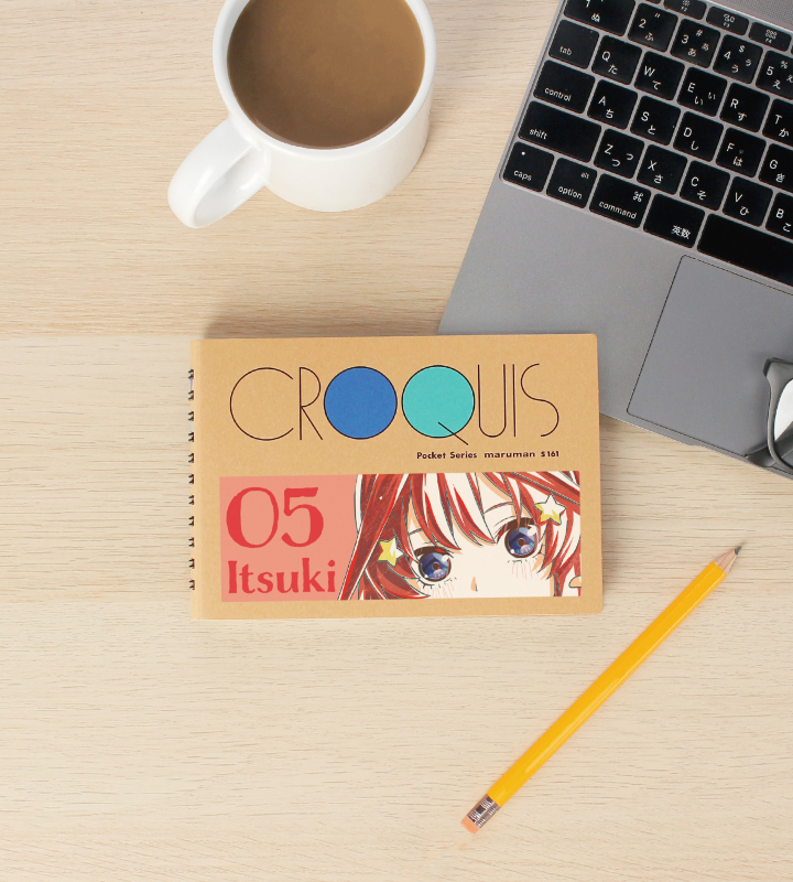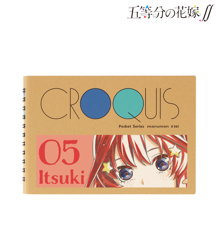 TVアニメ『五等分の花嫁∬』×「クロッキー」のコラボレーションアイテム「中野五月 Ani-Art 第4弾 クロッキーブック」の登場です。 マルマンのクロッキーブックは表紙がしなやかで開きやすく、アマチュアからプロまであらゆるユーザーに半世紀以上にわたって愛用されている、日本を代表するスケッチブックです。 中野五月を新たなタッチで魅力的に表現しました。 ラフな肌合いを持ちつつも丈夫な白クロッキー紙は表面の程よく自然な凹凸(シボ)が表現を豊かにし、ソフトで吸収性にも優れており、水彩にも適します。 スケッチだけでなく、ノートのようにもお使いいただけるアイテムです。 ※「Ani-Artシリーズ」は、キャラクターイラストをアーティスティックな表現で描いたAMNIBUSのオリジナル商品です。