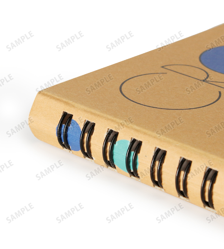 表紙は丈夫でありながら丸められるしなやかさを持ち、リング部分は鞄の中でもワイヤーが絡まないS.C.綴じ製本で仕上げています。