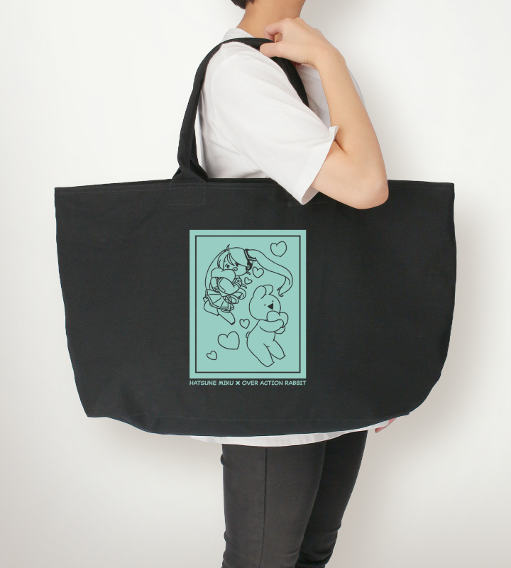 『初音ミク』×「すこぶる動くウサギ」のコラボレーションアイテム「MikuWorldCollab すこぶる動くウサギ BIGジップトートバッグ」の登場です。