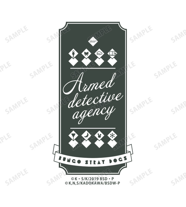 武装探偵社の面々をモチーフにしたアイコンと武装探偵社の英訳をレイアウトし、シックなデザインに仕上げました。