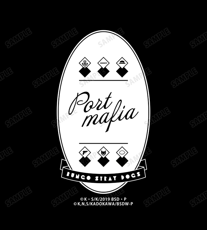 ポートマフィアの面々をモチーフにしたアイコンとポートマフィアの英字をレイアウトし、シックなデザインに仕上げました。