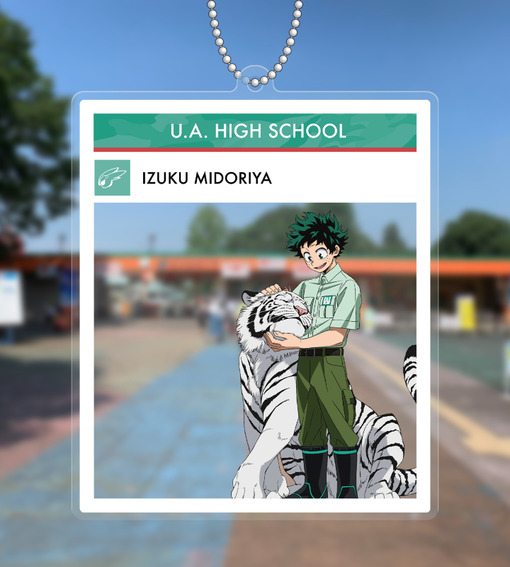 TVアニメ『僕のヒーローアカデミア』×「東武動物公園」のコラボレーションアイテム「東武動物公園コラボ 描き下ろしビジュアル 緑谷出久 飼育係ver. フォトフレーム風BIGアクリルキーホルダー」の登場です。