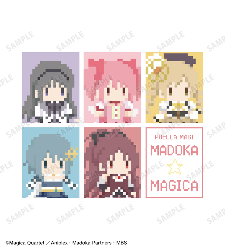鹿目まどか、暁美ほむら、巴マミ、美樹さやか、佐倉杏子のドット絵風のイラストをメインにデザインしました。