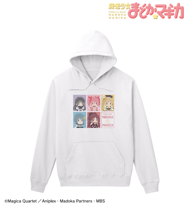 「ワンナイト人狼」×TVアニメ「魔法少女まどか☆マギカ」のコラボレーションアイテム「魔法少女集合 パーカー(ワンナイト人狼コラボドット絵ver.)」の登場です。