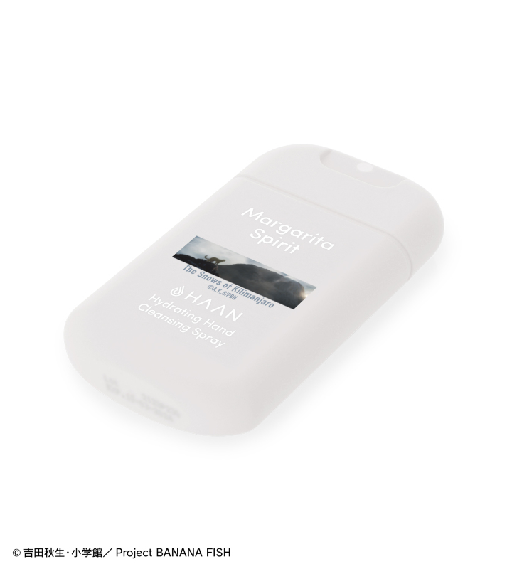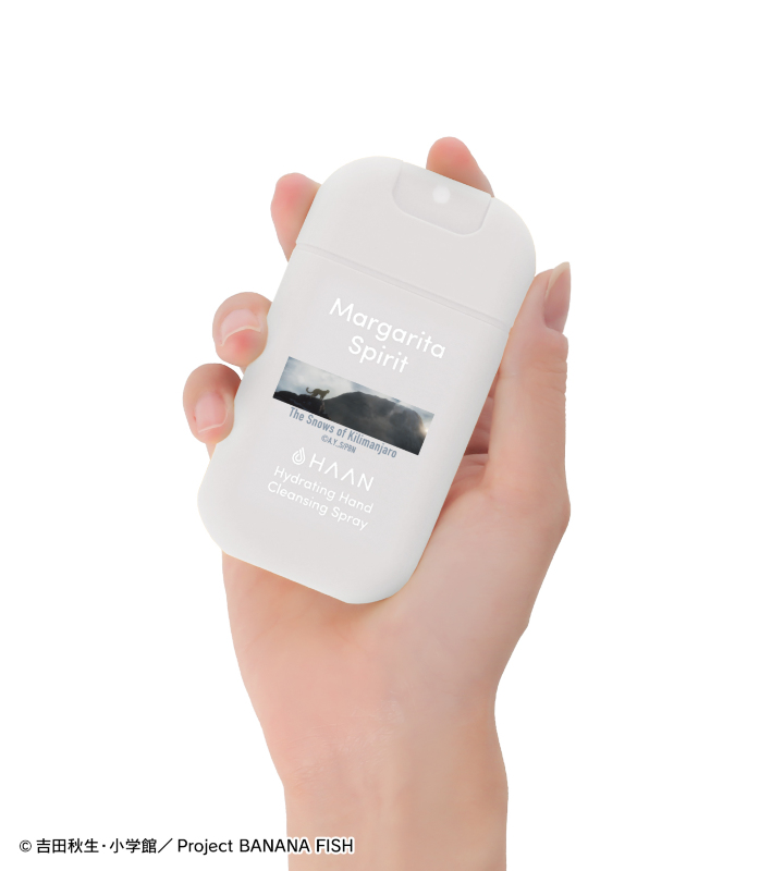 『BANANA FISH』×「HAAN」のコラボレーションアイテム「HAANコラボ 第13話 キリマンジャロの雪 ハンドクレンジングスプレー」の登場です。