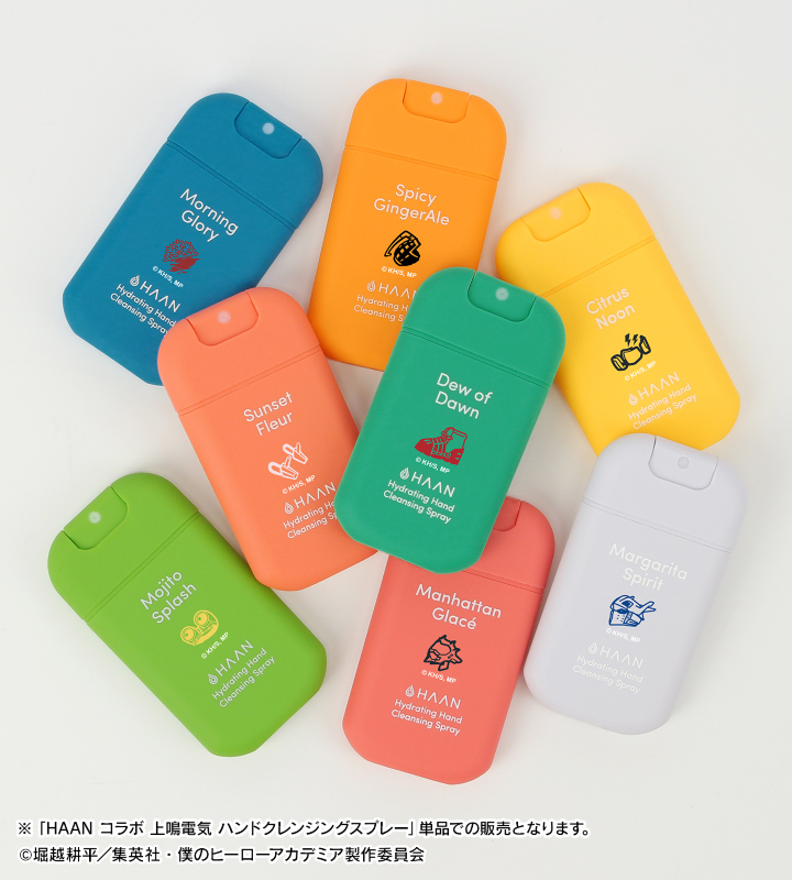 TVアニメ『僕のヒーローアカデミア』×「HAAN」のコラボレーションアイテム「HAAN コラボ 上鳴電気 ハンドクレンジングスプレー」の登場です。