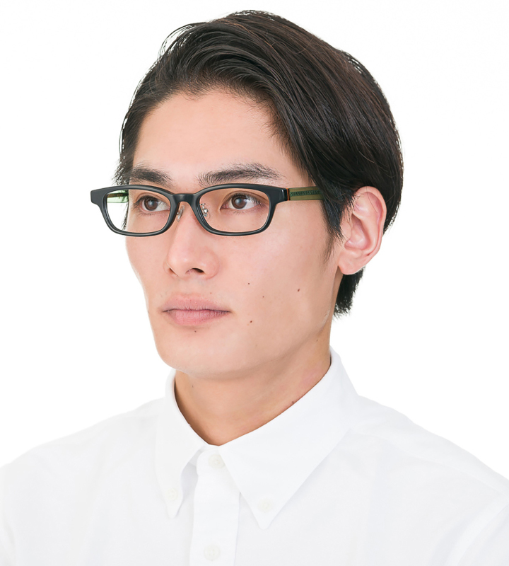 シンプルなスクエア型で、年代を問わずかけやすいフレーム。