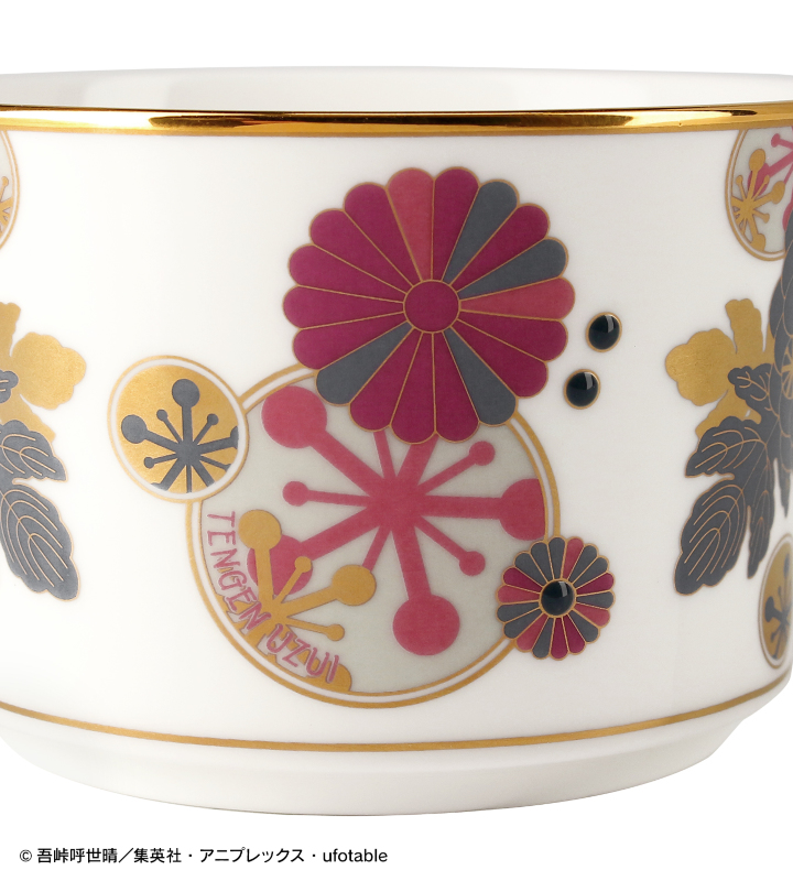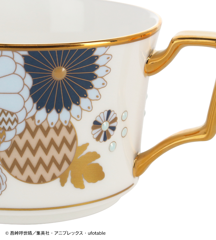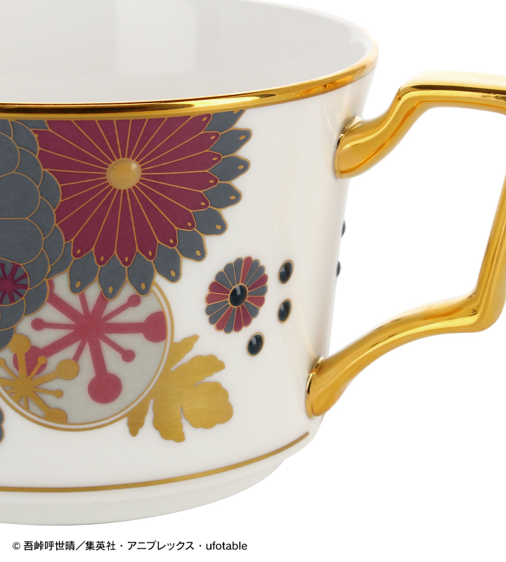 アニメ「鬼滅の刃」から「ノリタケ」のオリジナルアイテム「ノリタケ 嘴平伊之助&宇髄天元 カップ&ソーサーセット」の登場です。 和風の花柄をメインに、嘴平伊之助と宇髄天元のそれぞれの日輪刀の鐔などからイメージしたデザインに仕上げました。 持ち手、カップとソーサーの縁には金を施し、カップを置くと隠れる、ソーサーの中央には鐔をワンポイントでデザインしています。 食器としてはもちろん、お部屋に飾ってインテリアとしてもお使いいただけるアイテムです。