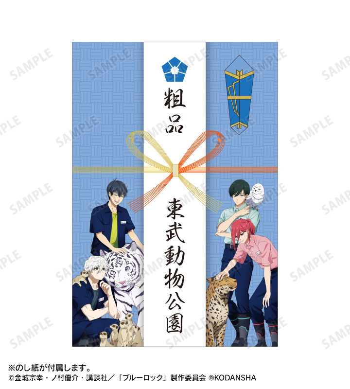のし紙にはブルーロックの青を基調に、東武動物公園コラボの描き下ろしイラストを加え、タオルにはブルーロックマークや動物のアイコンなどを加えたデザインとなっております。