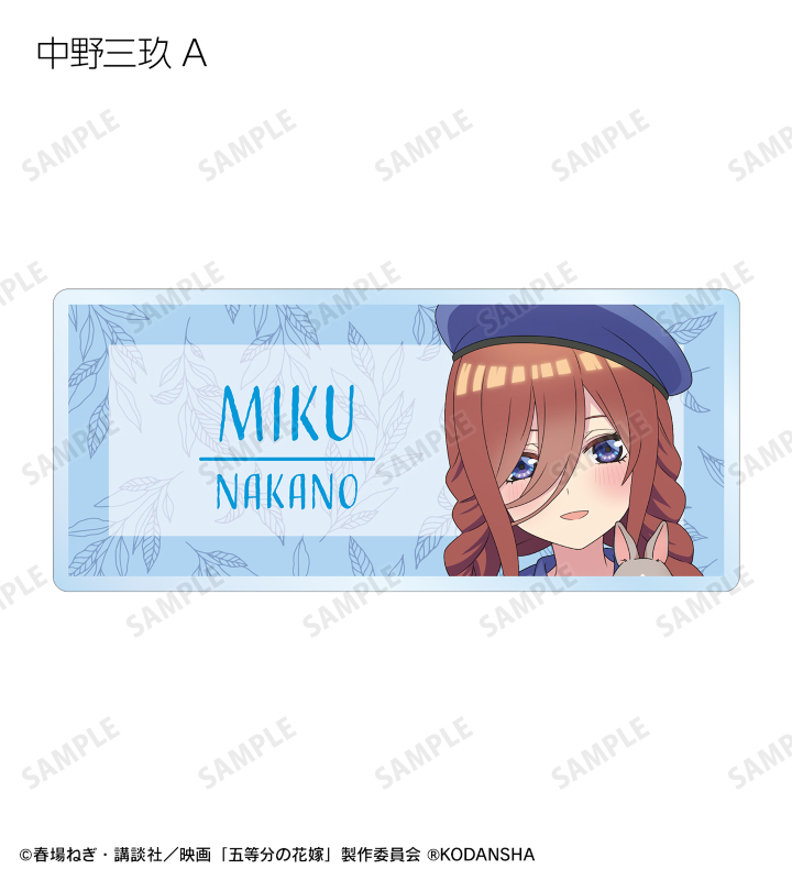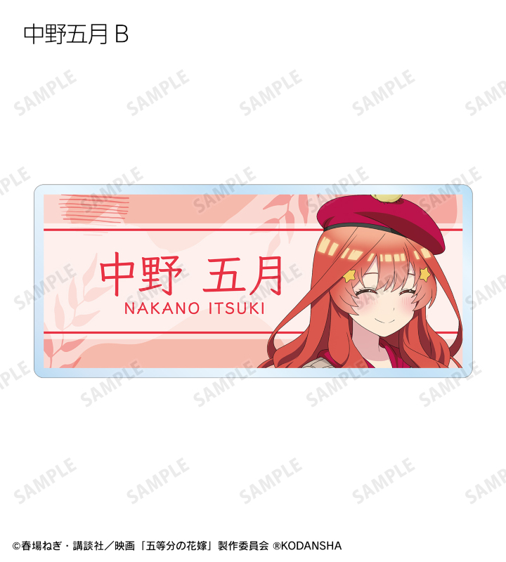 中野一花、中野二乃、中野三玖、中野四葉、中野五月の描き下ろしイラストをアクリルネームプレートに仕上げました。