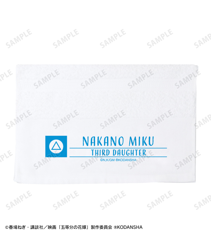 中野三玖の描き下ろしイラストとキャラクターモチーフを粗品タオルに仕上げました。
