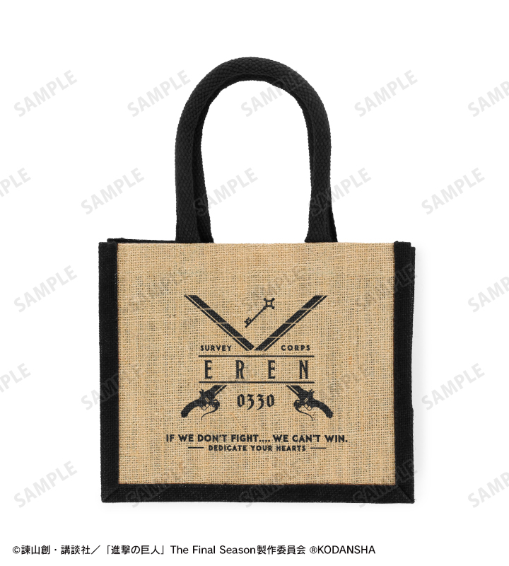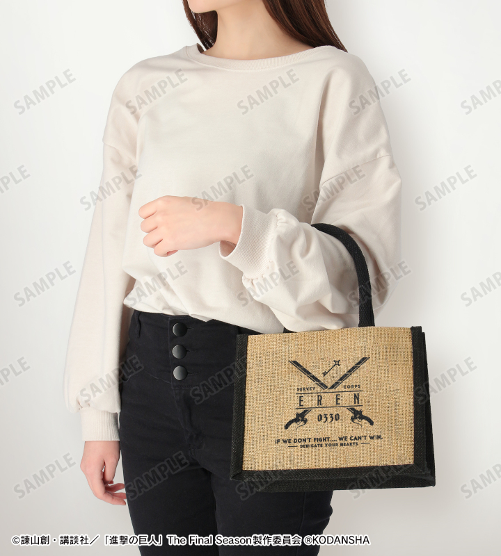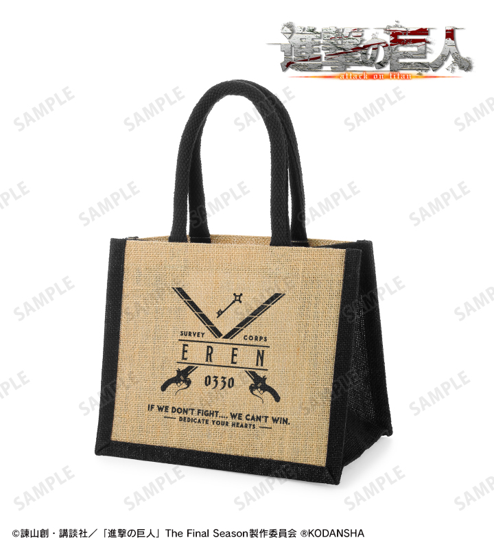 TVアニメ『進撃の巨人』×「アルマビアンカ サステナブルシリーズ」のコラボレーションアイテム「エレン ジュートバッグ」の登場です。