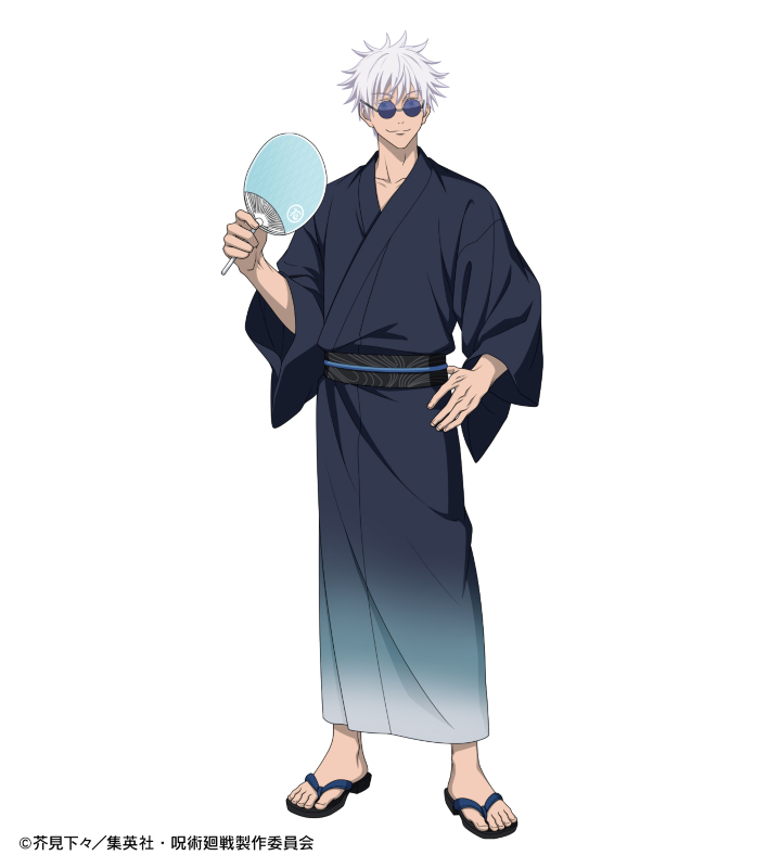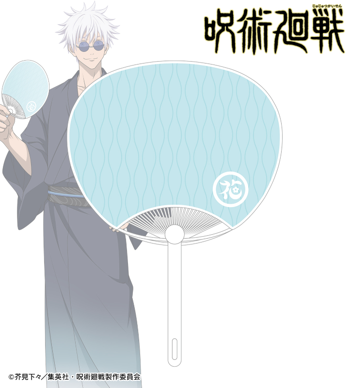 TVアニメ「呪術廻戦」より、「描き下ろしイラスト 懐玉・玉折 浴衣ver. 五条 悟着用 うちわ」の登場です。