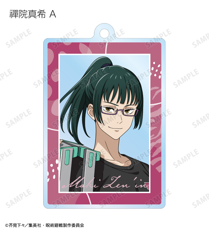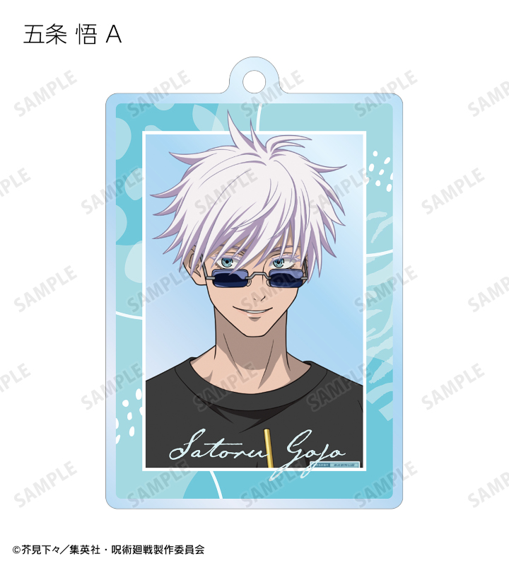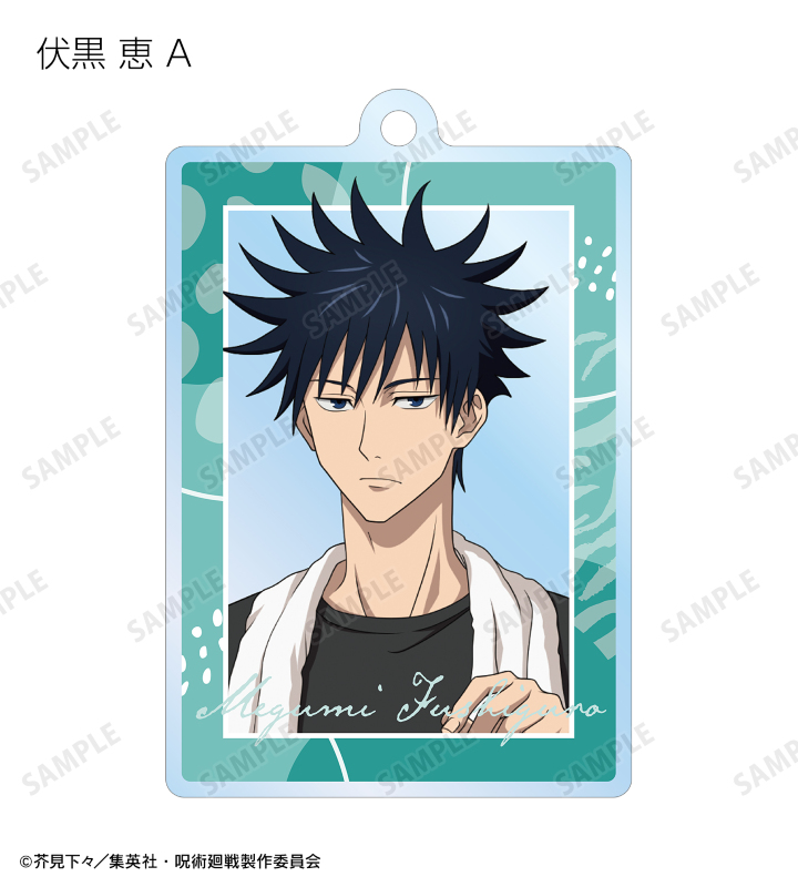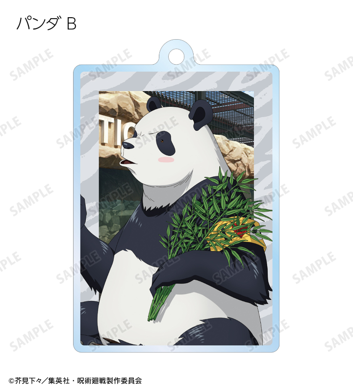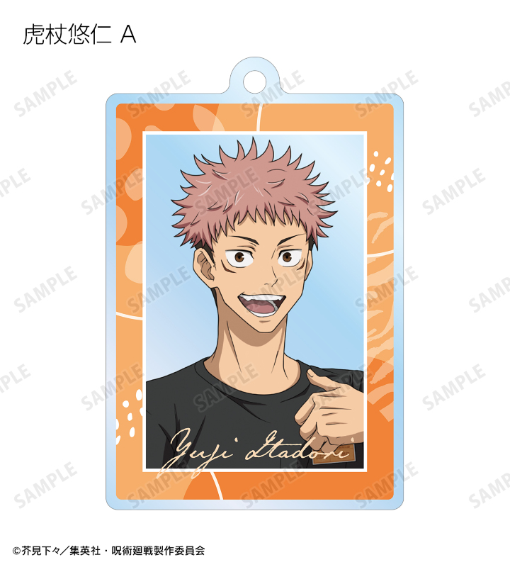 虎杖悠仁、伏黒 恵、釘崎野薔薇、禪院真希、狗巻 棘、パンダ、五条 悟の描き下ろしイラストをアクリルキーホルダーに仕上げました。