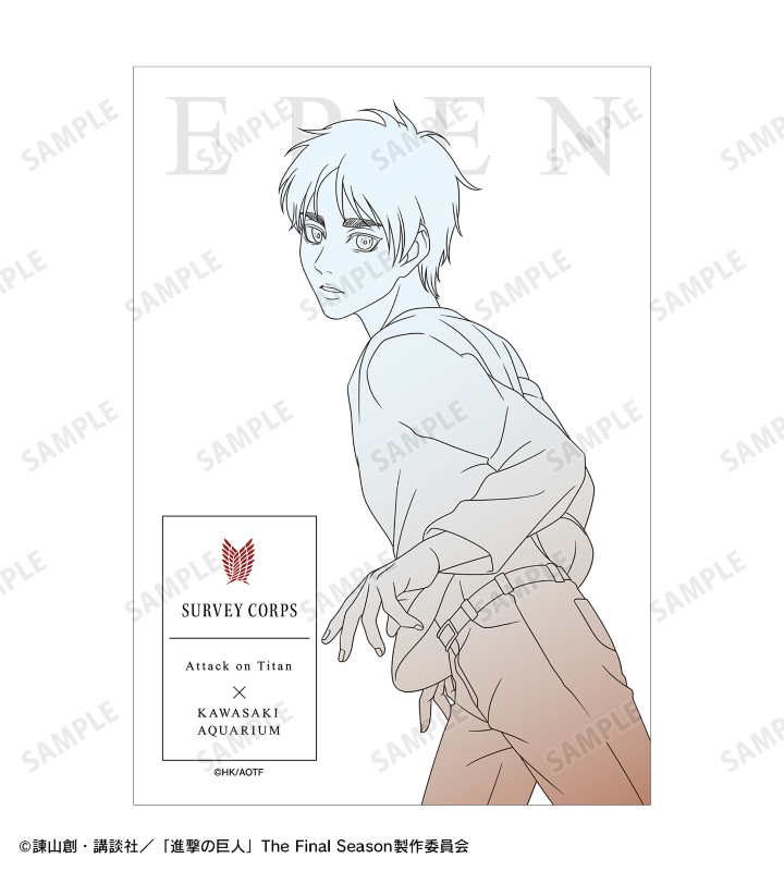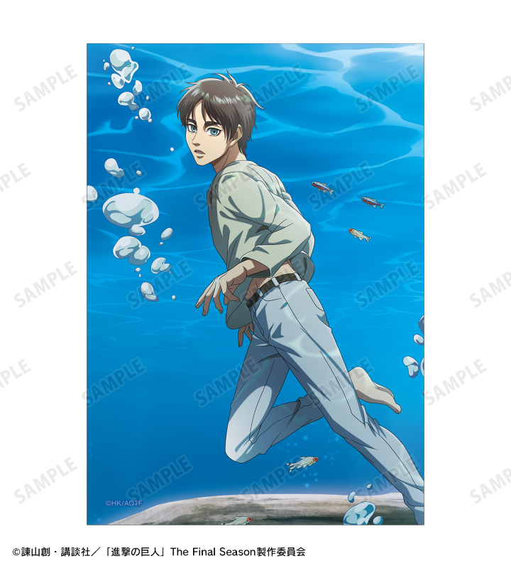 TVアニメ『進撃の巨人』×「カワスイ 川崎水族館」のコラボレーションアイテム「描き下ろしイラスト エレン 水中浮遊ver. ブロマイド2枚セット」の登場です。