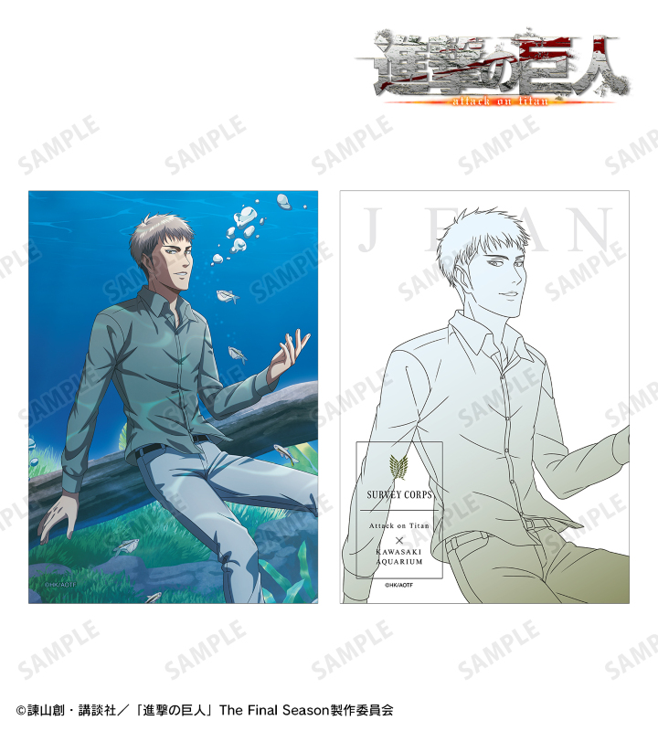 TVアニメ『進撃の巨人』×「カワスイ 川崎水族館」のコラボレーションアイテム「描き下ろしイラスト ジャン 水中浮遊ver. ブロマイド2枚セット」の登場です。