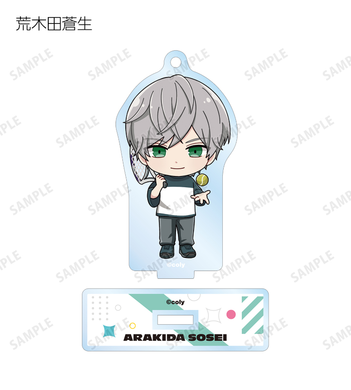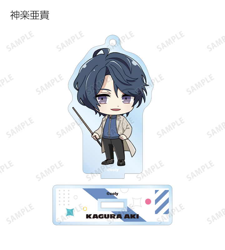 荒木田蒼生、朝霧司、服部耀、菅野夏樹、桧山貴臣、神楽亜貴、槙慶太、大谷羽鳥、可愛ひかる、早乙女郁人、瀬尾鳴海、日向志音、宝生潔のちびキャライラストをアクリルスタンドキーホルダーに仕上げました。