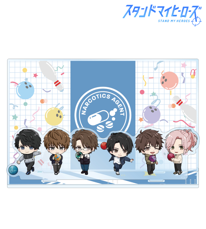 青山樹、今大路峻、夏目春、関大輔、渡部悟、由井孝太郎のちびキャライラストをアクリルジオラマに仕上げました。