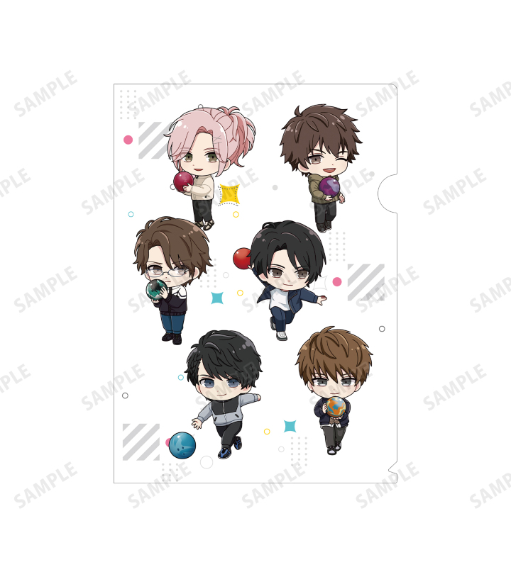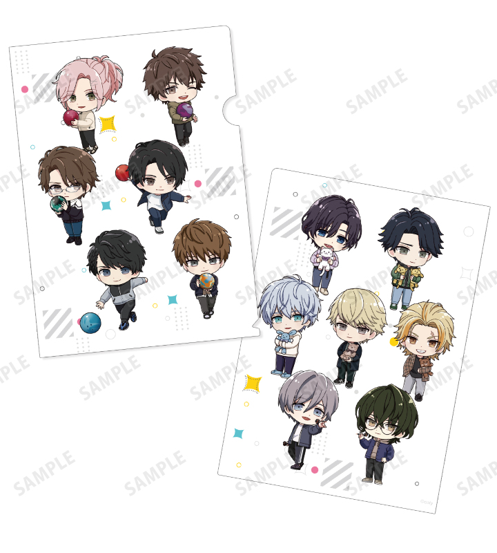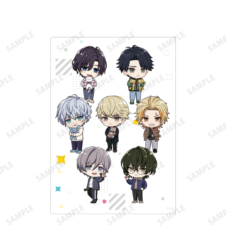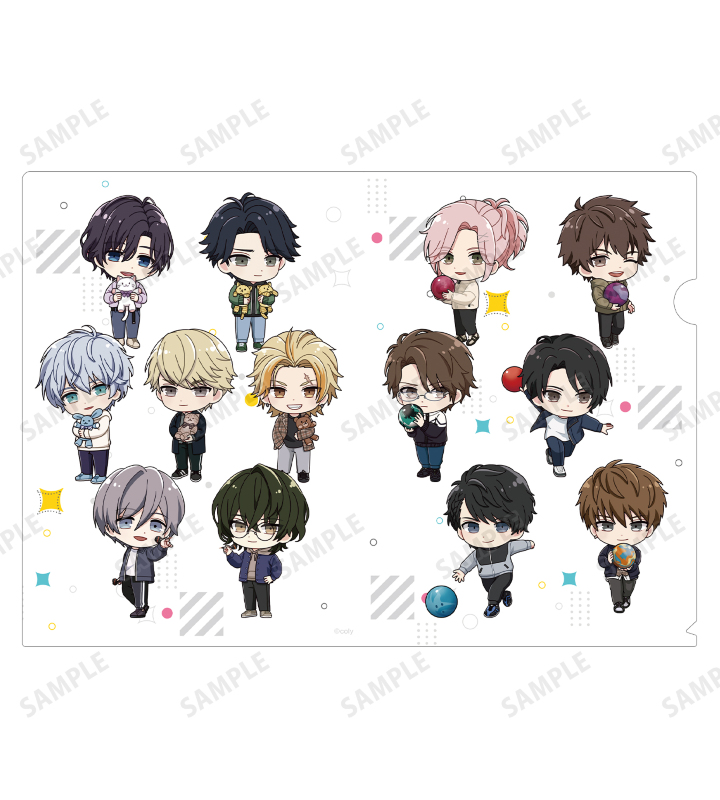青山樹、今大路峻、夏目春、関大輔、渡部悟、由井孝太郎、都築京介、都築誠、山崎カナメ、桐嶋宏弥、九条壮馬、宮瀬豪、新堂清志のちびキャライラストをクリアファイルに仕上げました。