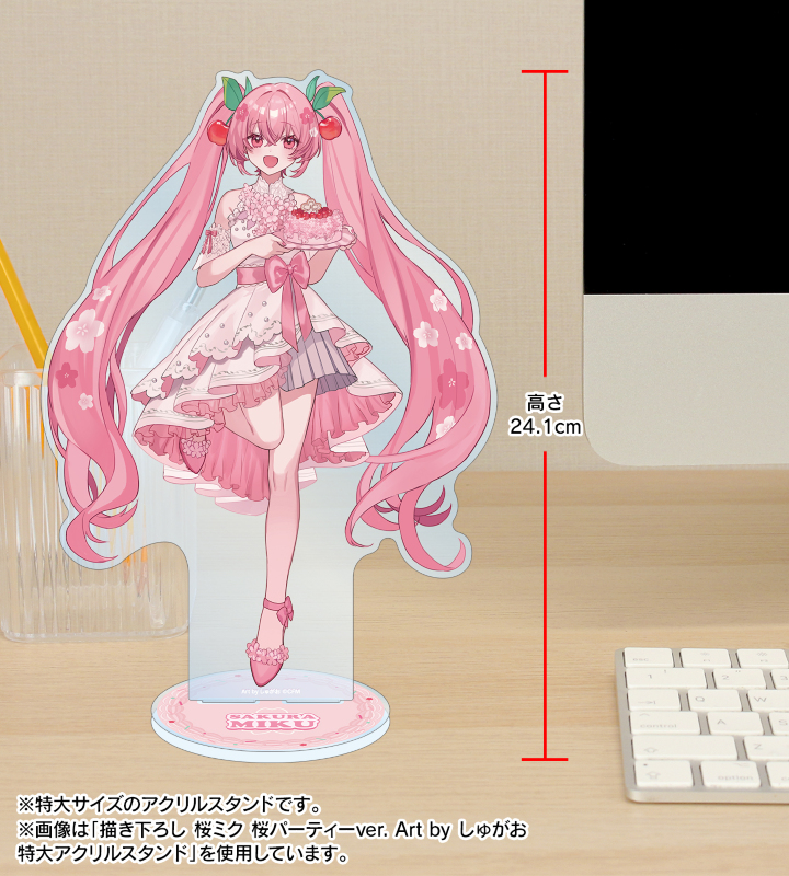 『桜ミク』×「しゅがお」のコラボレーションアイテム「描き下ろし MEIKO 桜パーティーver. Art by しゅがお 特大アクリルスタンド」の登場です。