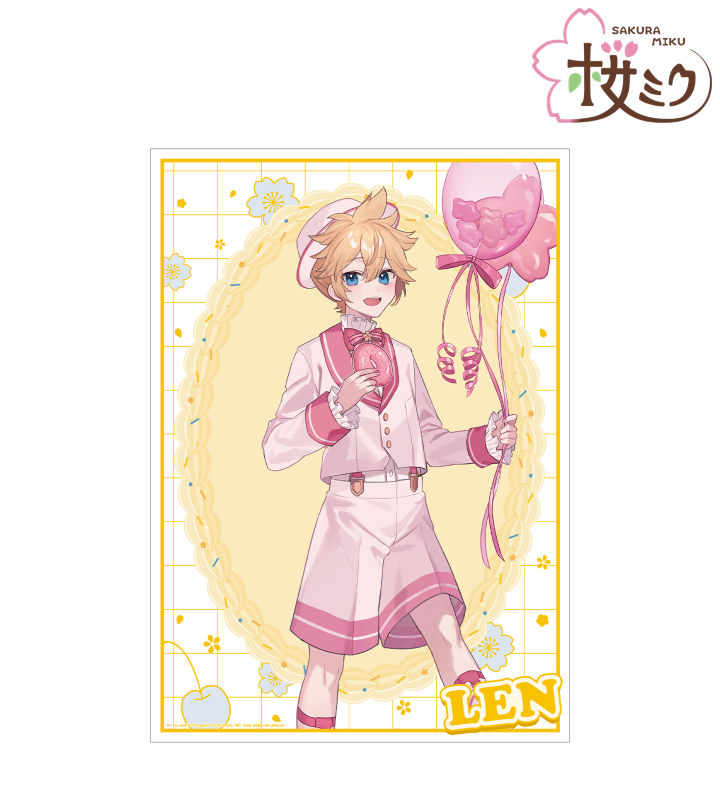『桜ミク』×「しゅがお」のコラボレーションアイテム「描き下ろし 鏡音レン 桜パーティーver. Art by しゅがお A3マット加工ポスター」の登場です。