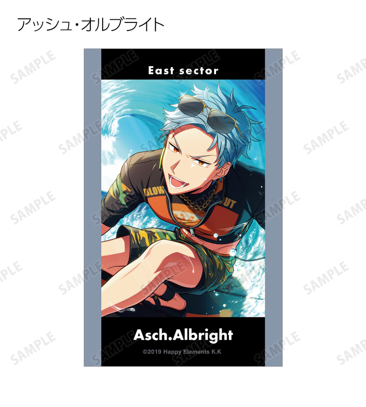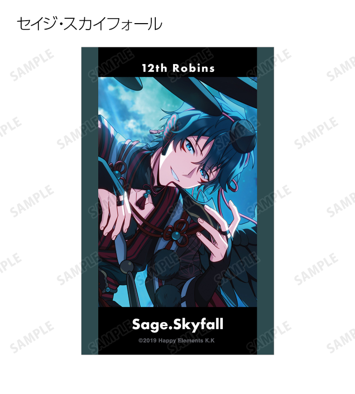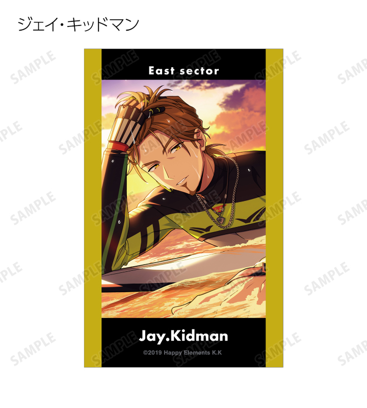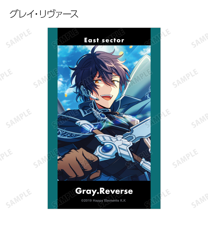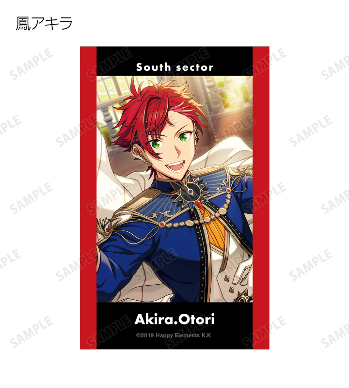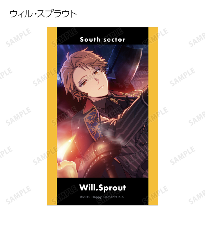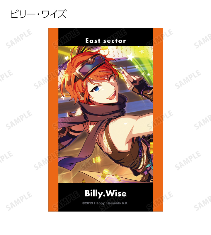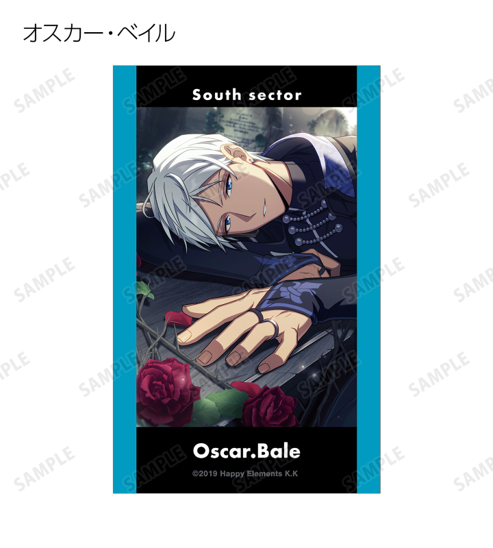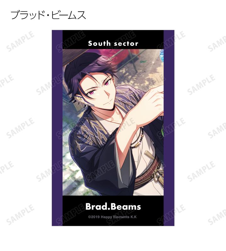 鳳アキラ、ウィル・スプラウト、ブラッド・ビームス、オスカー・ベイル、グレイ・リヴァース、ビリー・ワイズ、ジェイ・キッドマン、アッシュ・オルブライト、セイジ・スカイフォール、ニコのイラスト、キャラクター名、所属セクター名をインスタントフィルム風のデザインに仕上げました。