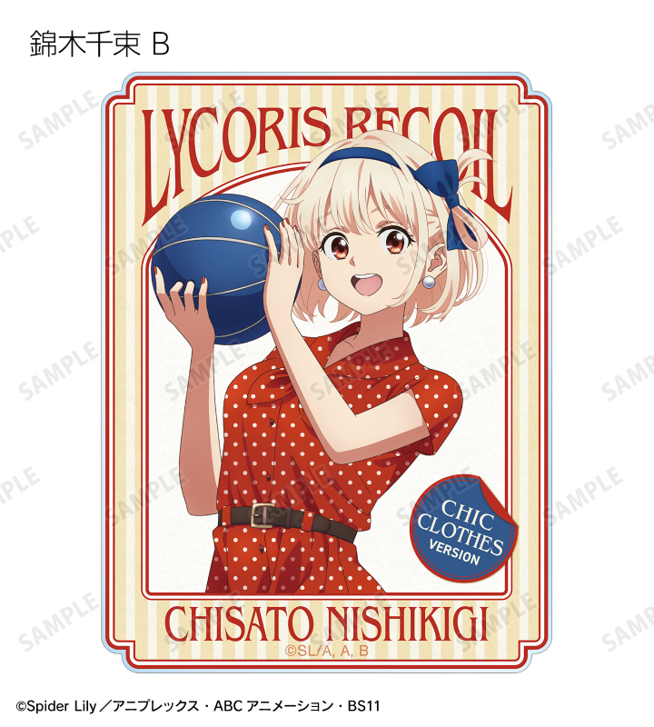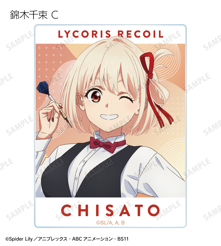 錦木千束、井ノ上たきなの描き下ろしイラストをアクリルカードに仕上げました。